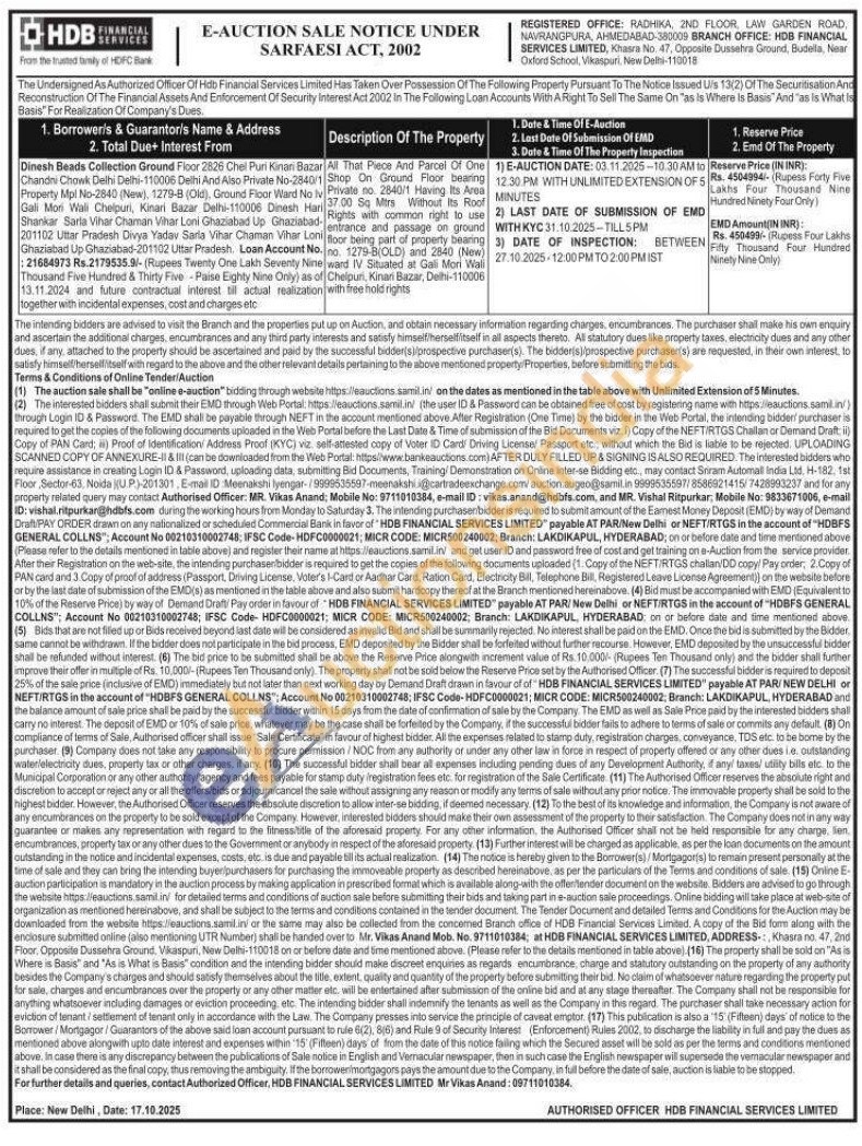 Authorised Officer. MR. Vikas Anand, Mobile No: 9711010384