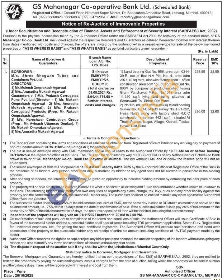 2) Plot No. 88, area adm 6386 sq. ft land bearing Survey No. 43/1A/34 (old survey No. 43/1+2/2, Hissa No.7) along with factory shed R.C.C construction area adm 4421 sq.ft, situated At Thube Pathare Nagar, Village-Kharadi, Taluka Haveli, Dist-Pune