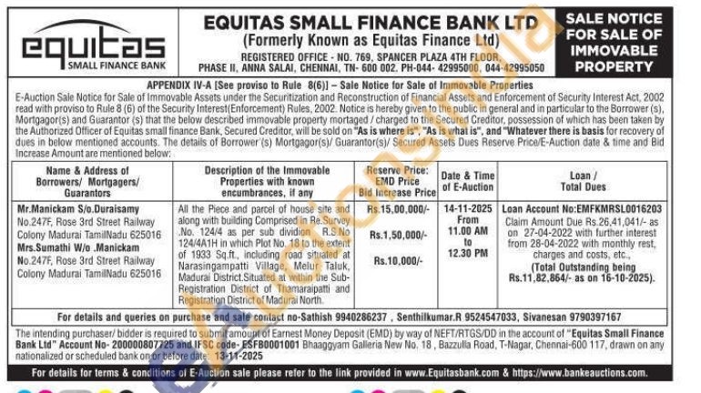 All the Piece and parcel of house site and along with building Comprised in Re. Survey No. 124/4 as per sub dividion R.S.No 124/4A1H in which Plot No. 18 to the extent of 1933 Sq.ft., including road situated at Narasingampatti Village, Melur Taluk, Madural District. Situated at within the Sub-Registration District of Thamaraipatti and Registration District of Madurai North