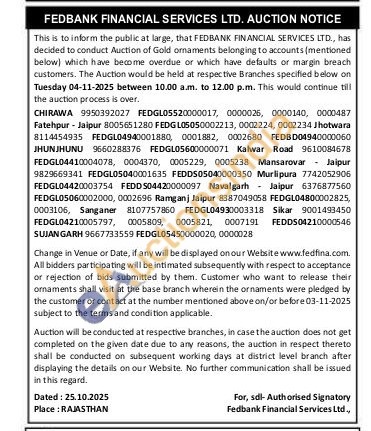 Fedbank Financial Services Ltd Gold Auctions Auction in Jaipur