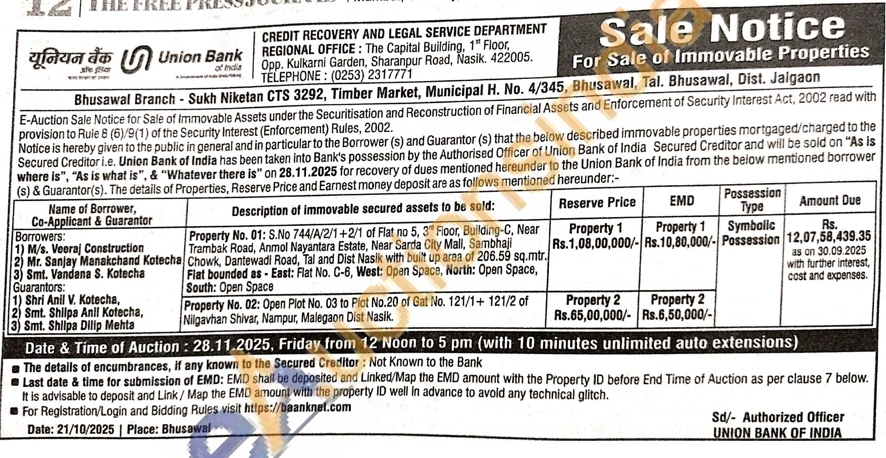 Property No. 02: Open Plot No. 03 to Plot No.20 of Gat No. 121/1+ 121/2 of Nilgavhan Shivar, Nampur, Malegaon Dist Nasik