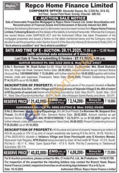 All that part and parcel of the property situated at Guntur Dist, Chebrolu Sub-Dist., within Village and Panchayat area of Vejendla Village D.No.484 of extent of 85 Sq. yards of vacant site therein which is being bounded by, East. Way-35-9 Ft, South. Way-23-0 Pt., West Site of Gurram Kantha Rao-25-3 FI., North, Site of Alasyam Sambi Reddy and others-30-0 Ft