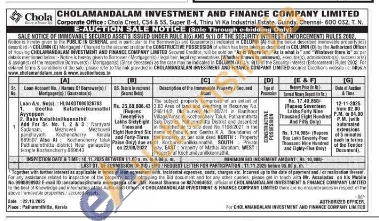 The subject property comprises of an extent of 3.83 Ares of land and everthing in Resurvey No 246/14/2, Old survey No. 80/7/1 in Elanthoor Village/Amsom, Kozhenchery Taluk, Pathanmthitta Sub District, Pathanmthitta District and described in the schedule to sale deed No 1198/2021 in the name of Babu K and Geetha KA. Boundaries of the property as per sale deed NORTH: Property of Kochumavunilkkunnathil, SOUTH: Private way, EAST: property of Mathai Abraham, WEST: Property of Kochumavunilkkunnathil