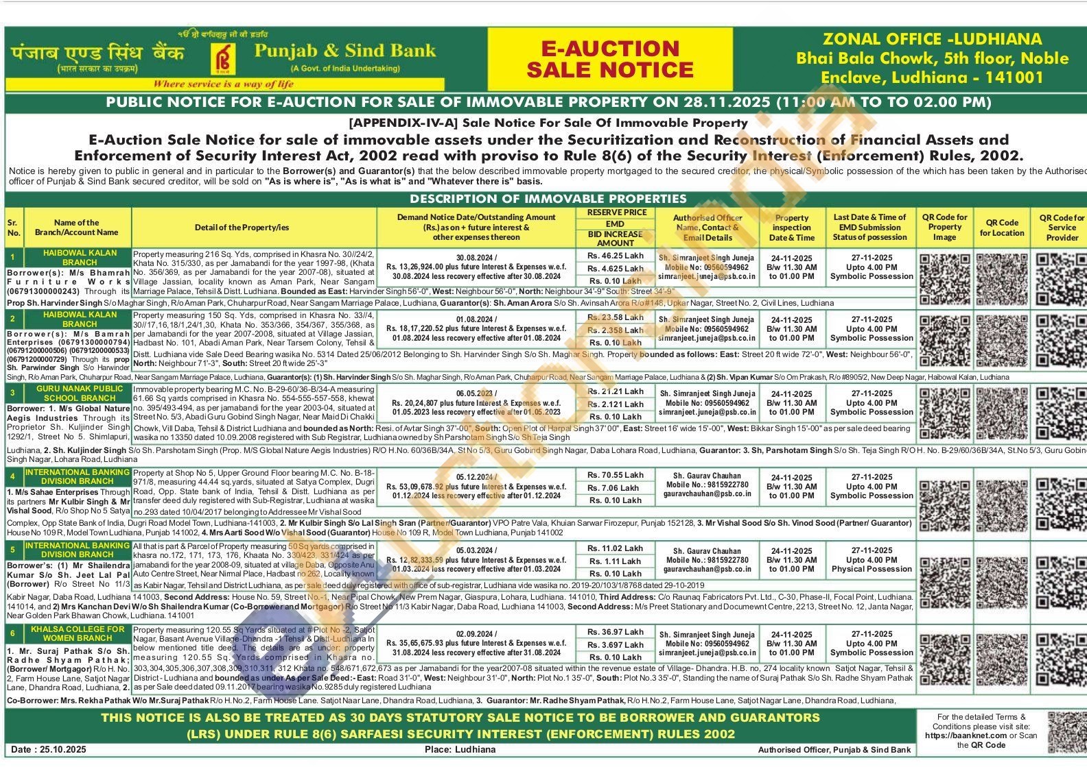 All that is part & Parcel of Property measuring 50 Sq yards comprised in khasra no, 172, 171, 173, 176, Khaata No. 330/423, 331/424 as per jamabandi for the year 2008-09, situated at village Daba, Opposite Anu Auto Centre Street, Near Nirmal Place, Hadbast no 262, Locality known as Kabir Nagar, Tehsil and District Ludhiana, as per sale deed duly registered with office of sub-registrar. Ludhiana vide wasika no. 2019-20/103/1/8768 dated 29-10-2019