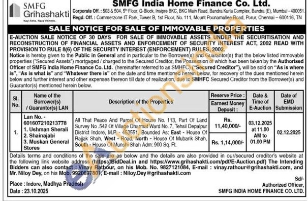 All That Peace And Parcel Of House No. 113, Part Of Land Survey No 542 Of Village Dharmat Ward No. 7, Tehsil Depalpur District Indore, M.P.453551, Bounded As: East House Of Rajjak Shah, West Road, North House Of Mubarik Shah, South-House Of Munshi Shah Adm: 900 Sq. Ft