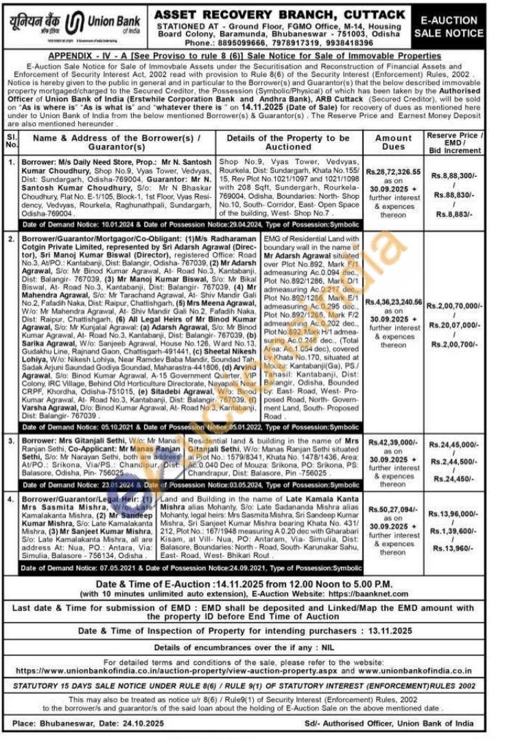 Shop No.9, Vyas Tower, Vedvyas, Rourkela, Dist: Sundargarh, Khata No. 155/15. Rev Plot No. 1021/1097 and 1021/1098 with 208 Sqft, Sundergarh, Rourkela 769004, Odisha, Boundaries: North- Shop No.10, South- Corridor, East-Open Space of the building, West-Shop No.7