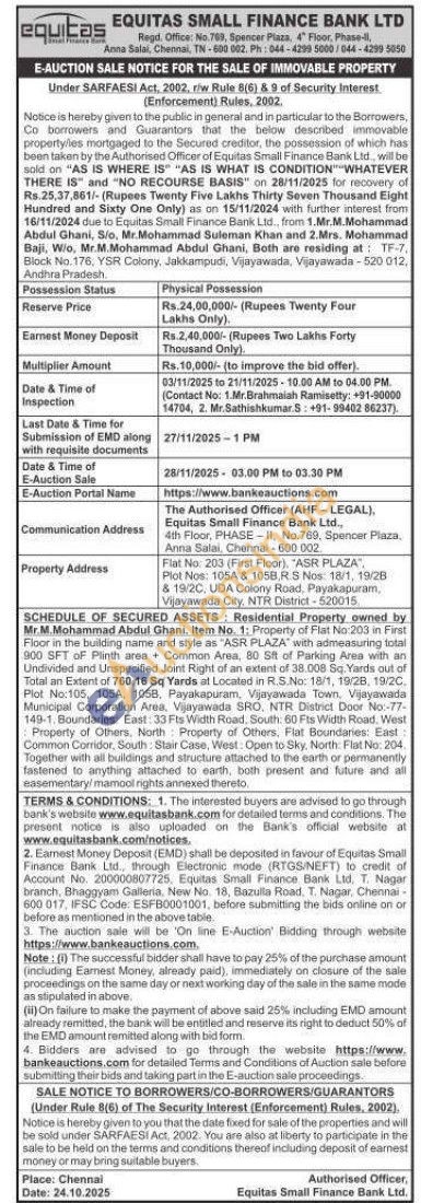 Flat No: 203 (First Floor). "ASR PLAZA, Plot Nos: 105A & 1058.R.S Nos: 18/1, 19/28 & 19/2C, UDA Colony Road, Payakapuram, Vijayawada City, NTR District-520015