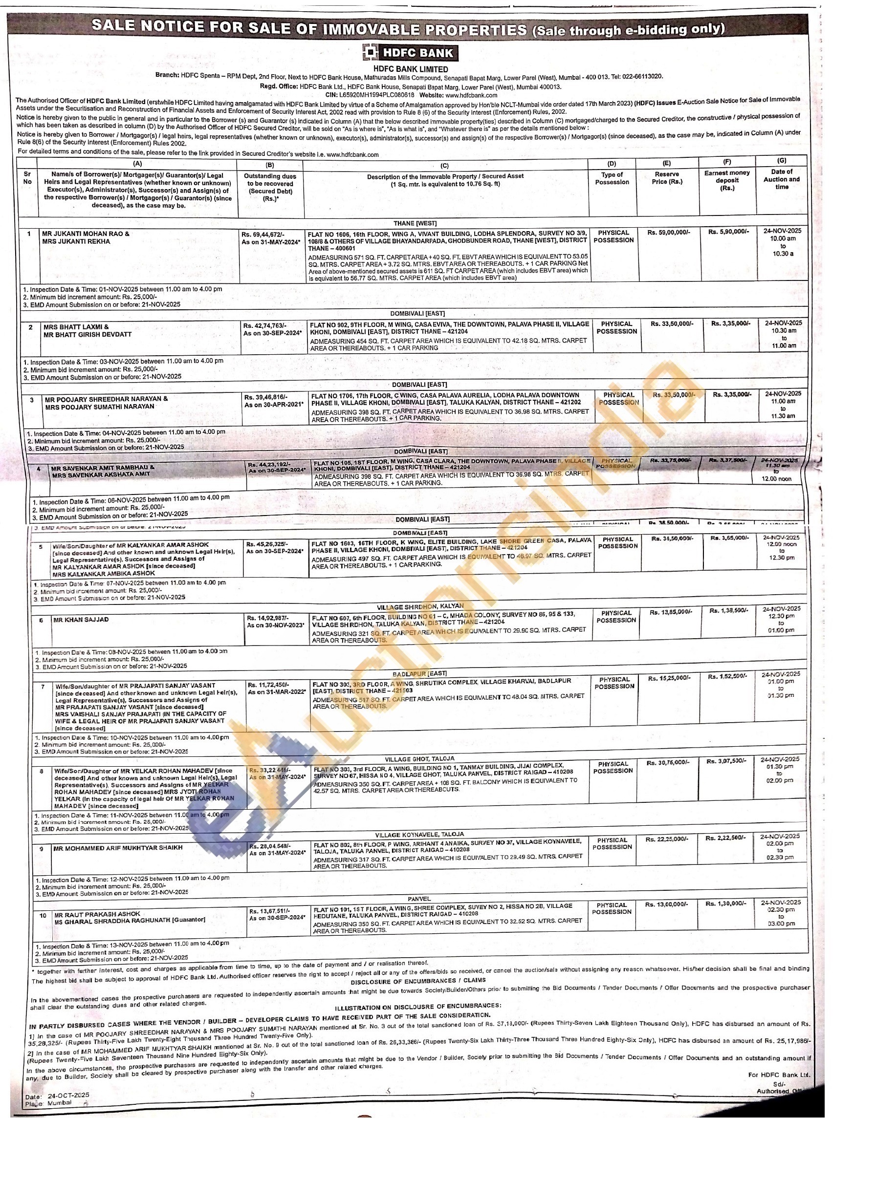 FLAT NO 802, 8th FLOOR, P WING, ARIHANT 4 ANAIKA, SURVEY NO 37, VILLAGE KOYNAVELE, TALOJA, TALUKA PANVEL, DISTRICT RAIGAD-410208 ADMEASURING 317 SQ. FT. CARPET AREA WHICH IS EQUIVALENT TO 29.49 SQ. MTRS. CARPET AREA OR THEREABOUTS.