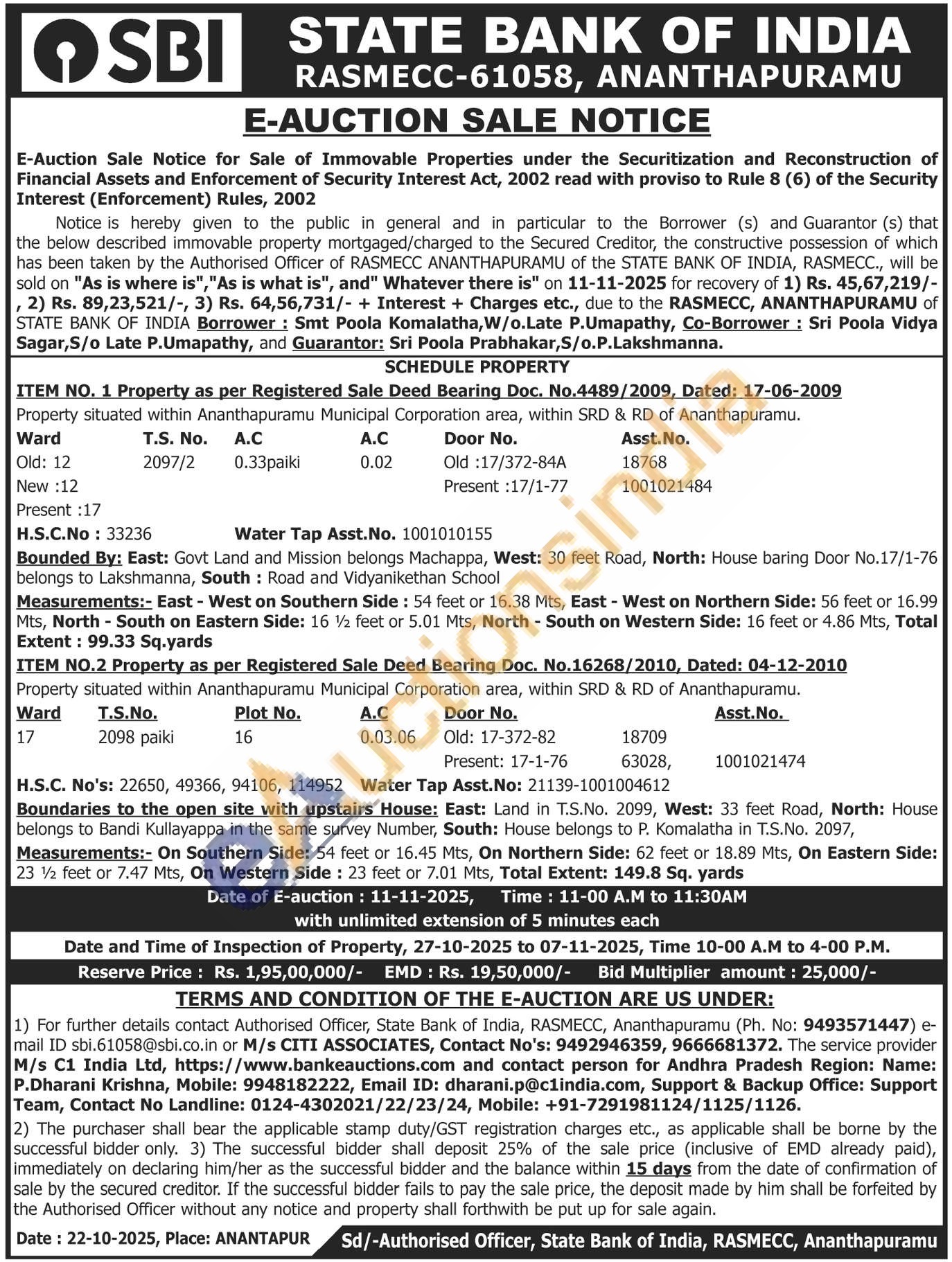 Property situated within Ananthapuramu Municipal Corporation area, within SRD & RD of Ananthapuramu.