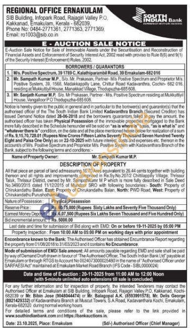 DESCRIPTION OF PROPERTY : All that piece an parcel of land admeesuning 10.70 Ares equivalent to 26.44 cents together with building thereon and all rights and improvements comprised in Re Sy No.20712 Chittilappily Vilage. Theisaur Taluk, Thrissur District, owned by Mr. Sampathkumr M Pahich is more fully described in Sale Deed No.3400/2015 dated 11/12/2015 of Mundoor SRD with following boundanes South: Property of Chirukandathu Balan, East: Property of Chirukandathu Balan, North: PWD Road, West: Property of Chinikandathu Purushothaman