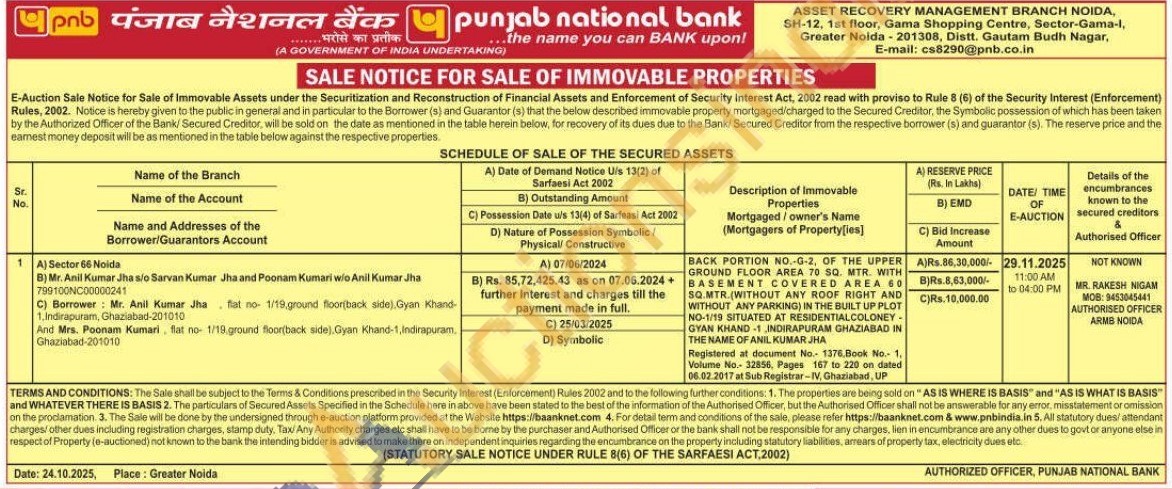 BACK PORTION NO.-G-2, OF THE UPPER GROUND FLOOR AREA 70 SQ. MTR. WITH BASER BASEMENT COVERED AREA 60 SQ.MTR. (WITHOUT ANY ROOF RIGHT AND WITHOUT ANY PARKING) IN THE BUILT UP PLOT NO-1/13 SITUATED AT RESIDENTIAL COLONEY-GYAN KHAND -1 INDIRAPURAM GHAZIABAD IN