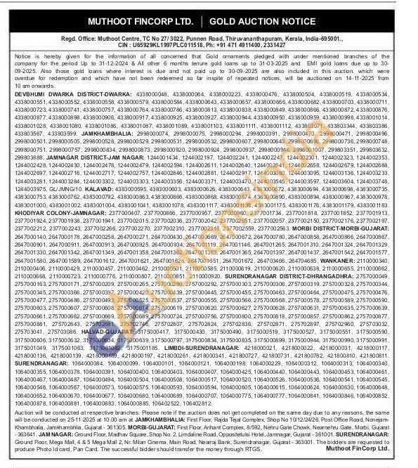 Muthoot Fincorp Ltd Gold Auctions Auction in Morbi