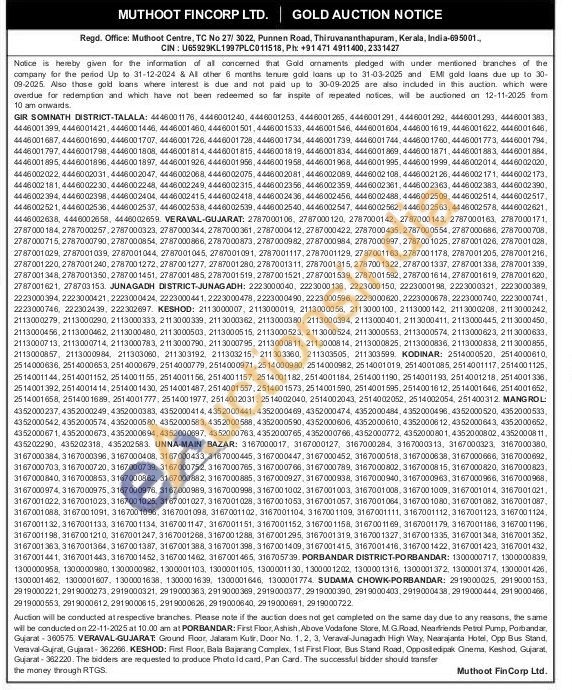 Muthoot Fincorp Ltd Gold Auctions Auction in Thiruvananthapuram