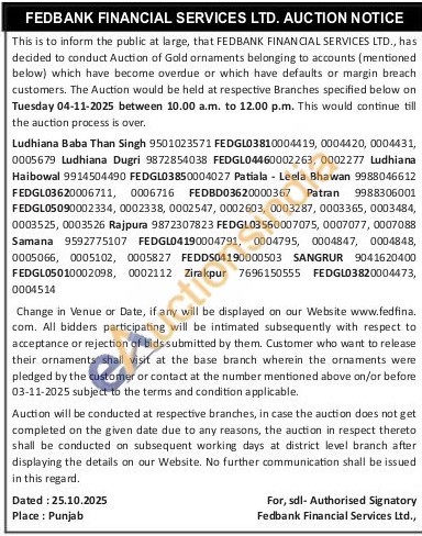 Fedbank Financial Services Ltd Gold Auctions Auction in Ludhiana