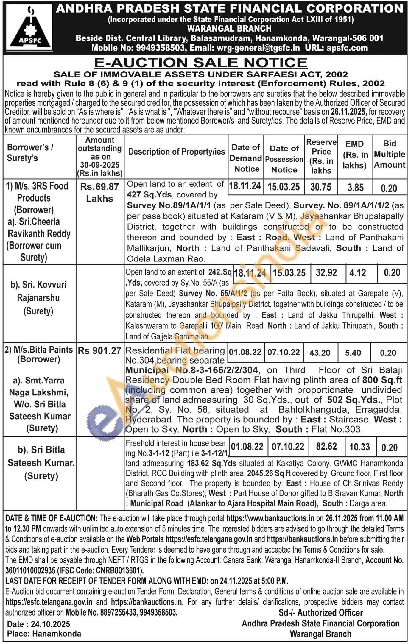 Contact Number:8897255433, 9949358503
