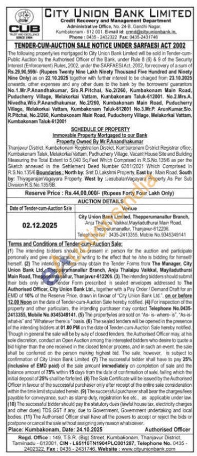 Thanjavur District, Kumbakonam Registration District, Kumbakonam District Registrar office, Kumbakonam Taluk, Melakorkai Vattam, Pudhuchery Village, Vacant House Site and Building Measuring the Total Extent to 5,040 Sq. Feet Which Comprised in RS.No. 1356 as per the Sketch annexed in the Settlement Deed Number 6381/2021 Which Comprised in R.S.No. 135/6 Boundaries: North by: Sit D.Lakshmi Property, East by: Main Road, South by: Thiyagarajan Vagaiyara Property, West by JesubalanVlagayara Property As Per Sub Division RS.No. 135/68