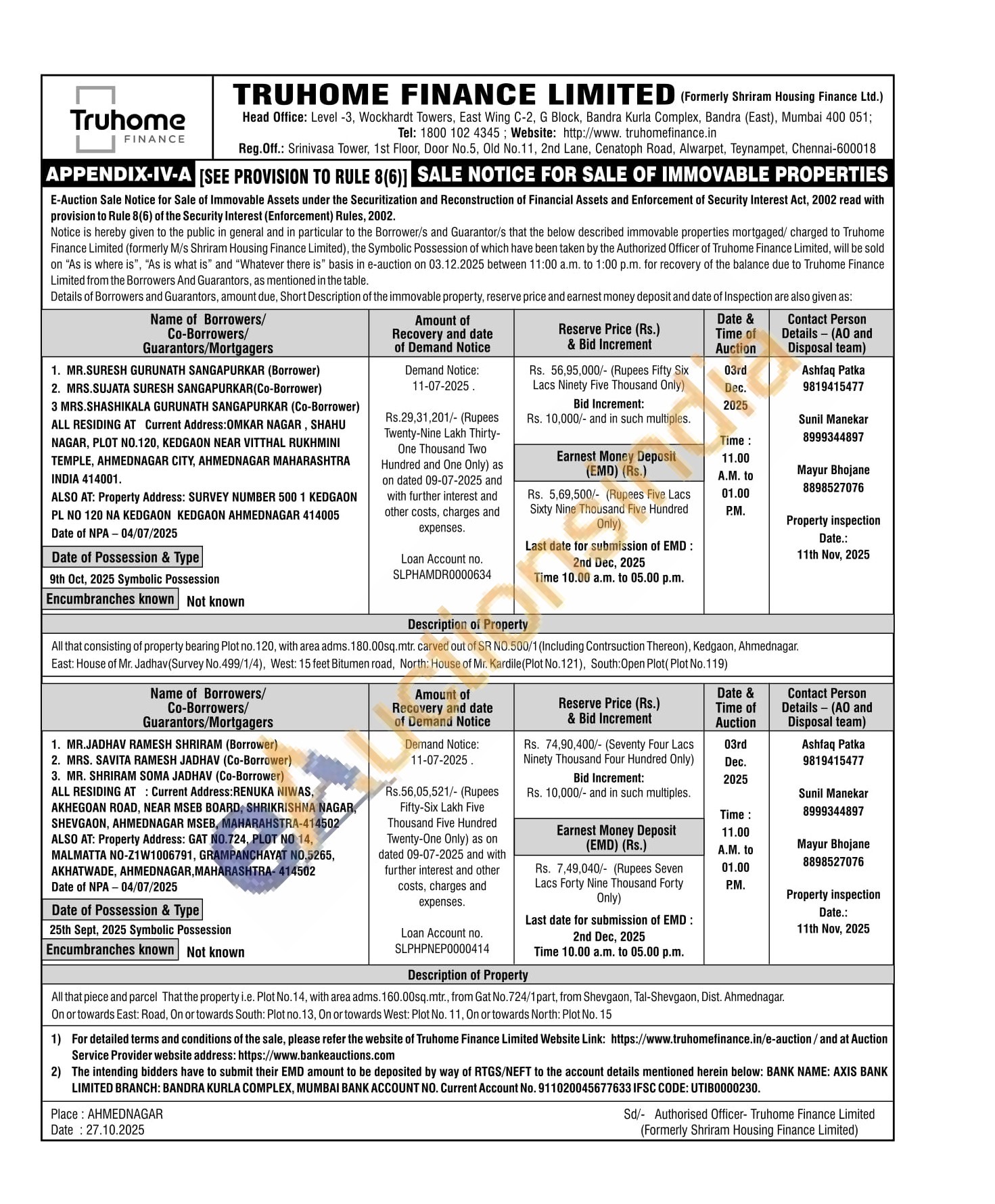 All that piece and parcel That the property i.e. Plot No. 14, with area adms. 160.00sq.mtr., from Gat No.724/1 part, from Shevgaon, Tal-Shevgaon, Dist. Ahmednagar. On or towards East: Road, On or towards South: Plot no. 13, On or towards West: Plot No. 11, On or towards North: Plot No. 15