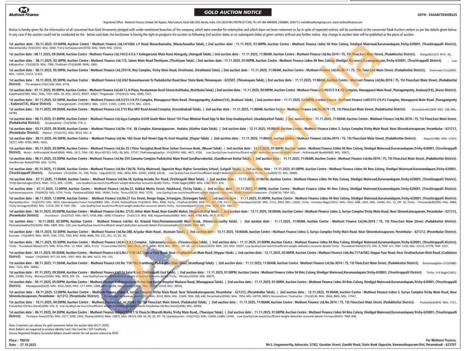 Muthoot Finance Ltd Gold Auctions Auction in Nagpur