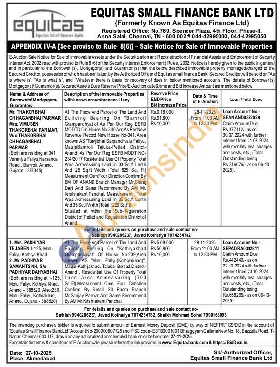 All The Piece And Parcel of The Land And Building Bearing On "Bamroil Grampanchyat of As Per Our Reg ESFB MODTD Old House No-340 And As Per New Revenue Record New House No-341, Area knowm AS "Ravjibhai Sarpanchvalu Faliyu, MaujeBamroli, Taluka-Petlad, District-Anand. As Per Our Reg ESFB MODT NO-234/2017 Residential Use Of Property Total Area Admeasuring Land In 33 Sq.ft Lenth And 25 Sq.ft Width (Total 825 Sq. Ft) Measurment Cum Four Direction Confirm By BM OF ANAND Branch Manager Mr.Chiraj Darji And Same Recommend By AM Mr. Krishnakant Panchal. Measurement: Total Area Admeasuring Land In 35 Sq.ft Lenth And 35 Sql Width (Total 1225 Sq.Ft) Situated at within the Sub-Registration District of Petlad and Registration District of Anand.