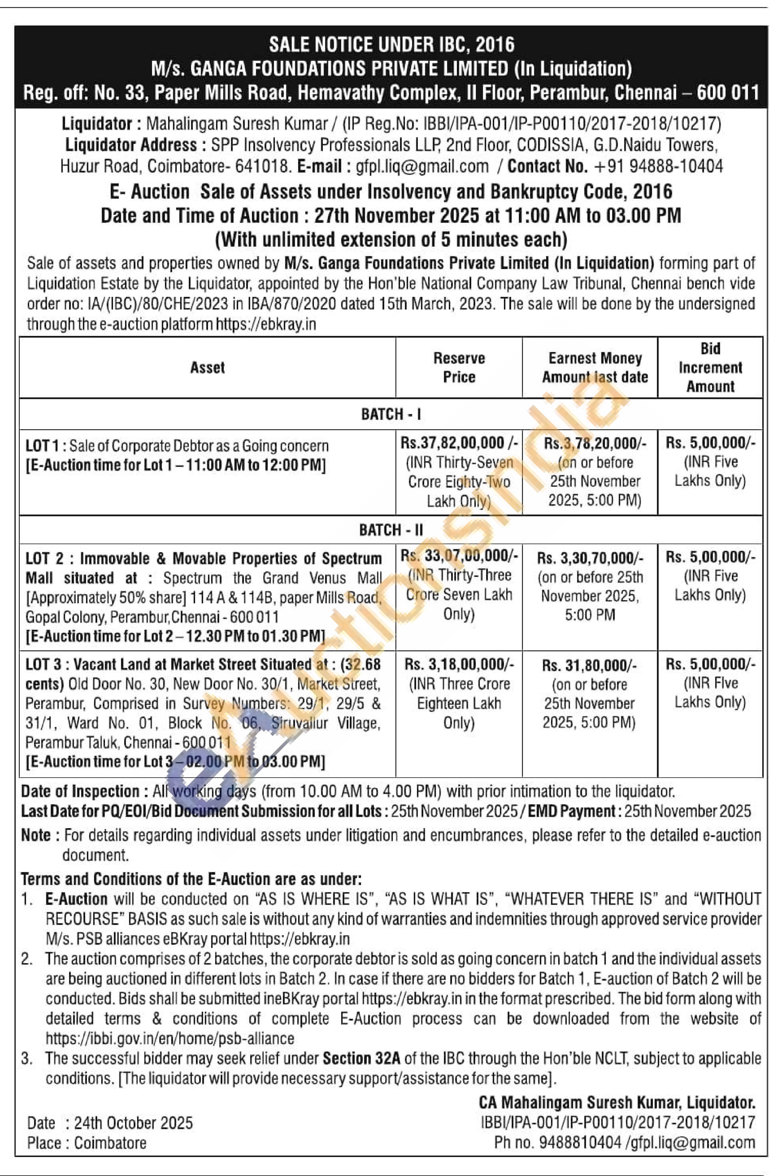 LOT1: Sale of Corporate Debtor as a Going concern
