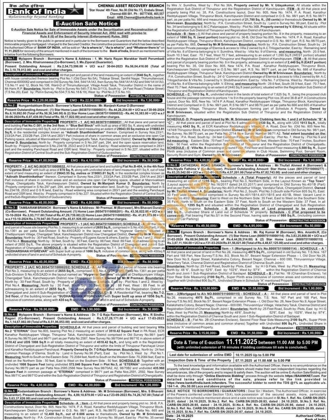 SCHEDULE-A: All that piece and parcel of building and land bearing Villa No.2 "ETERNIA" Door No 805, bearing Plot No.2 measuring an extent of 3510.42 Square Feet in PA Road, ECR Kanathur Reddykuppam Village, Thiruporur Taluk, Kanchipuram District comprised in Old Survey No. 98/1 (part) R.Survey No. 98/70 part and 98/71 part as per Patta No.2587, New Survey No.98/70A4 and 98/71E in above extent of 3510.42 and UDS 1008 Sq.ft in all totally measuring an extent of 4518.42 Sq.ft., and lying with in the Registration District of Chengalpet and Sub-Registration District of Thiruporur and within the limits of Thiruporur Panchayat Union and Kanathur Reddykuppam Panchayat. Property Owned by Dr. T G Raja Ramanan. Boundaries: North by: 24 feet Common Passage of Eternia, South by: Land in Survey No. 98 (Part), East by Plot No.3, West by Plot No. 1. Measuring: North to South on the Eastern Side: 70.2084 feet, North to South on the Western Side: 70.2084 feet, East to West on the Northern Side: 50 feet, East to West on the Southem Side: 50 feet SCHEDULE-B: Together with an undivided 1008 Square Feet being undivided 572.040 Square Feet in Plot No.5, at "ETERNIA" comprised in Old Survey No.98/70 part as per Patta Nos 2585.2588 New Survey Nos. 98/70A2, A2, 98/7082 and undivided 435.960 Square Feet in common passage at "ETERNIA" comprised in 98/71 part as Patta Nos,2591, 2592, New Survey Nos 98/71C and 98/71D and within the Sub-Registration District of Thiruporur and Registration District of Chengalpattu