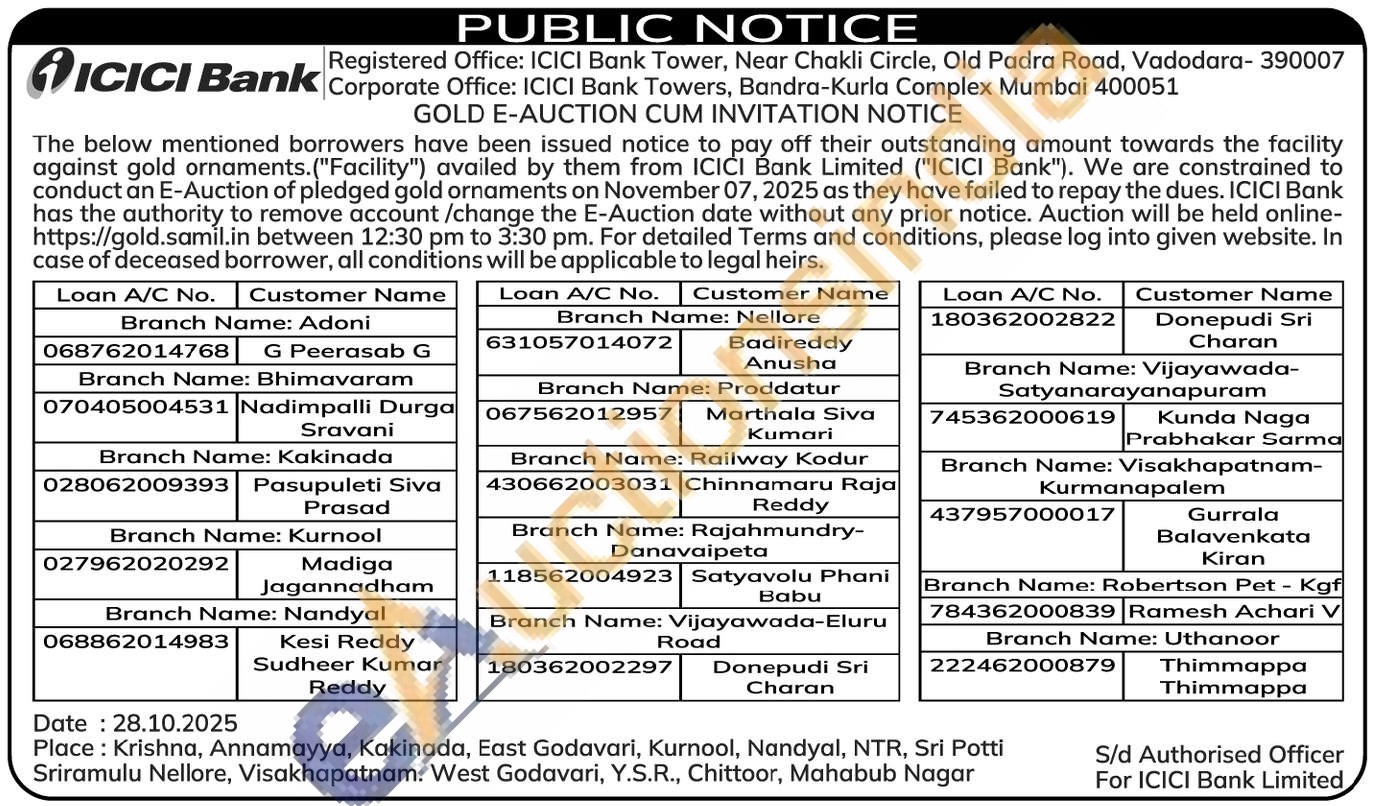ICICI Bank Gold Auctions Auction in Krishna