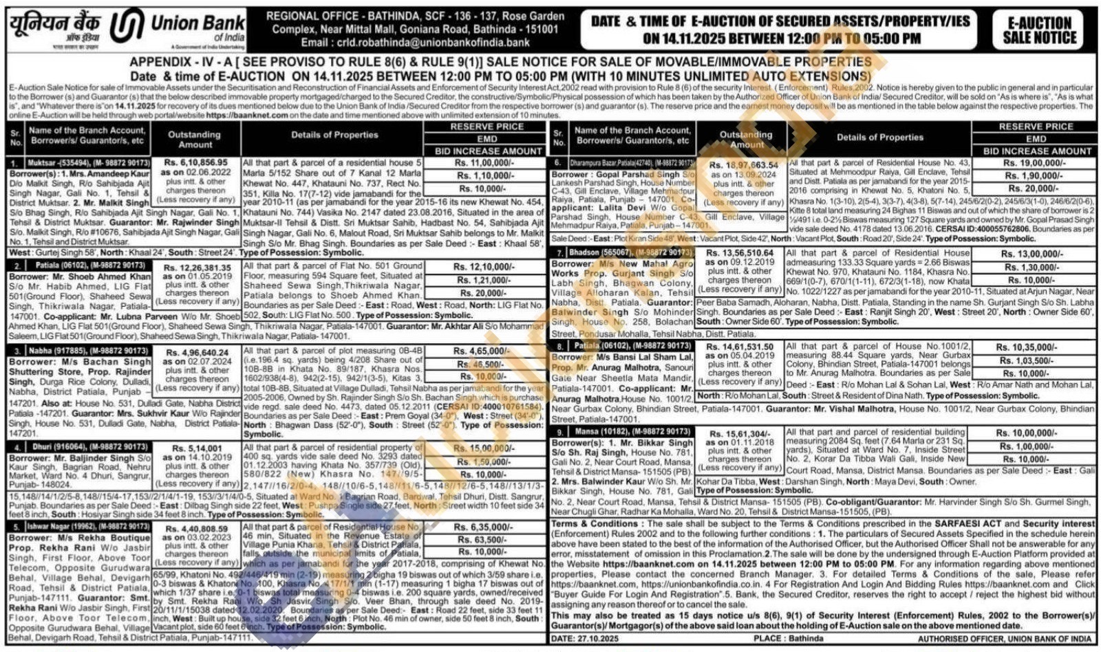 All that part & parcel of a residential house 5 Marla 5/152 Share out of 7 Kanal 12 Marla Khewat No. 447, Khatauni No. 737, Rect No. 351, Killa No. 17(7-12) vide jamabandi for the year 2010-11 (as per jamabandi for the year 2015-16 its new Khewat No. 454,Khatauni No. 744) Vasika No. 2147 dated 23.08.2016, Situated in the area of Muktsar-II Tehsil & Distt. Sri Muktsar Sahib, Hadbast No. 54, Sahibjada AjitGali Singh Nagar, Gali No. 6, Malout Road, Sri Muktsar Sahib belongs to Mr. Malkit Singh S/o Mr. Bhag Singh. Boundaries as per Sale Deed:- East: Khaal 58', . Type of Possession: Symbolic.