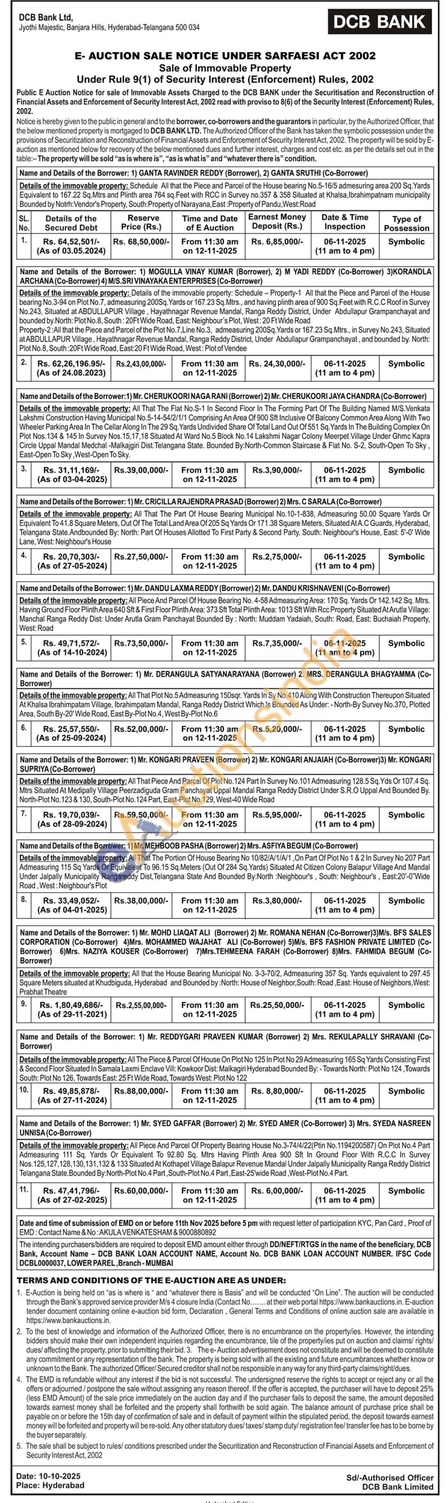 Details of the immovable property: All That The Portion Of House Bearing No 10/82/A/1/A/1, On Part Of Plot No 1 & 2 In Survey No 207 Part Admeasuring 115 Sq Yards Or Equivalent To 96.15 Sq.Meters (Out Of 284 Sq. Yards) Situated At Citizen Colony Balapur Village And Mandal Under Jalpally Municipality Rangareddy Dist, Telangana State And Bounded By:North :Neighbour's, South: Neighbour's, East:20'-0"Wide Road, West: Neighbour's Plot