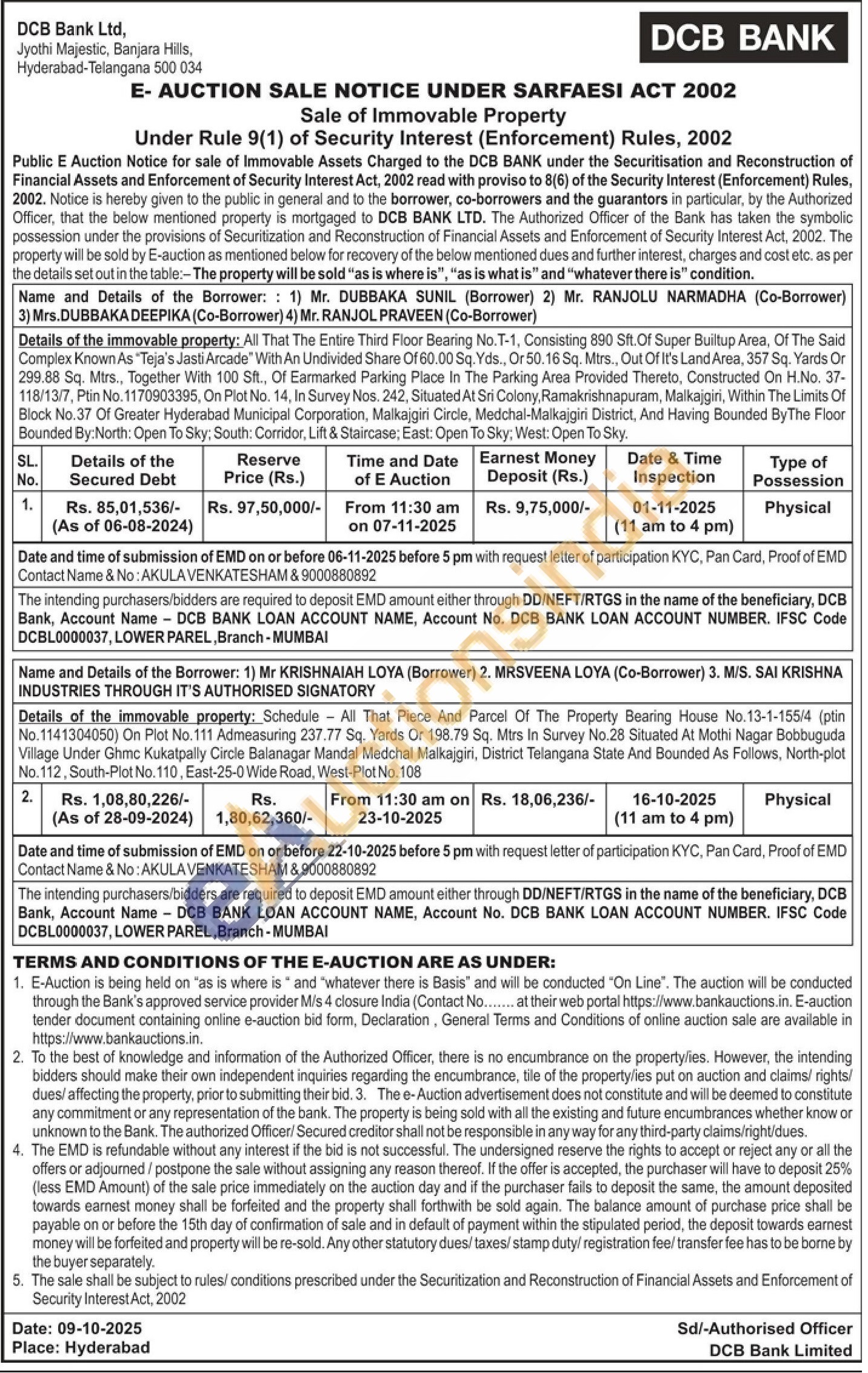 Description of Mortgage Properties: All That The Bearing Residentail Property Housing No 2-5-373 & 374 To An Extent Of 195.61 Sq Yrds Out Of Khammam Situated At Buradaraghavapuram Area, Trunk Road, Khammam Town Dist Bounded By: East: House Of Veeradhadrams House 26 Feet Road; South: Municipal Corporation Road; West: Galli; North: Galli & House Of Veeradhadrams