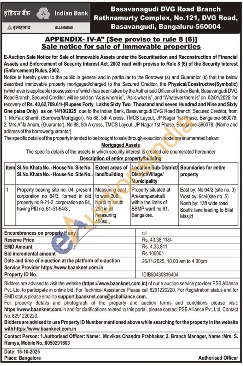 Location Sub-District/District/Village/Municipality : Property situated at Arekempanahalli within the limits of BBMP ward no 61, Bangalore