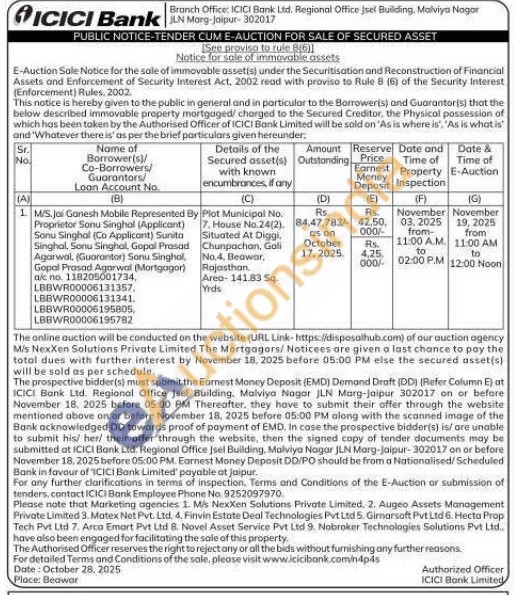 Plot Municipal No. 7. House No.24(2), Situated At Diggi. Chunpachan, Goli No.4, Beawar, Rajasthan Area-141.83 Sq. Yrds
