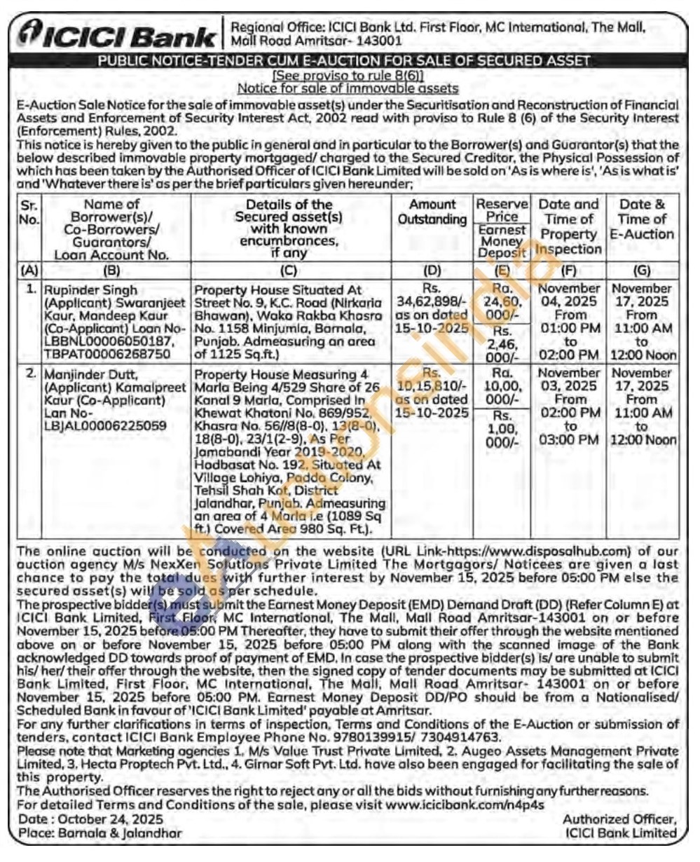 Property House Situated At Street No. 9, K.C. Road (Nirkaria Bhawan), Waka Rakba Khasra No. 1158 Minjumla, Barnala, Punjab. Admeasuring an area of 1125 Sq.ft.)