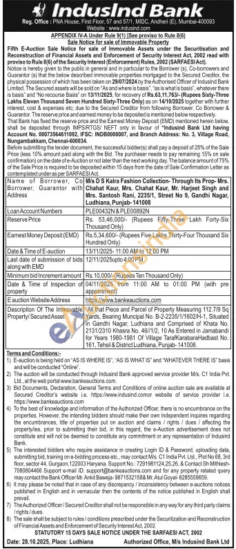 All that Piece and Parcel of Property Measuring 112.7/9 Sq Yards, Bearing Muncipal No. B-2-2235/1/1602/H-1, Situated in Gandhi Nagar, Ludhiana and Comprised of Khata No. 2131/2310 Khasra No. 46//1/2, 10 As Entered in Jamabandi for Years 1980-1981 Of Village TarafKarabara Hadbast No. 161, Tehsil & District Ludhiana, Punjab-141008.