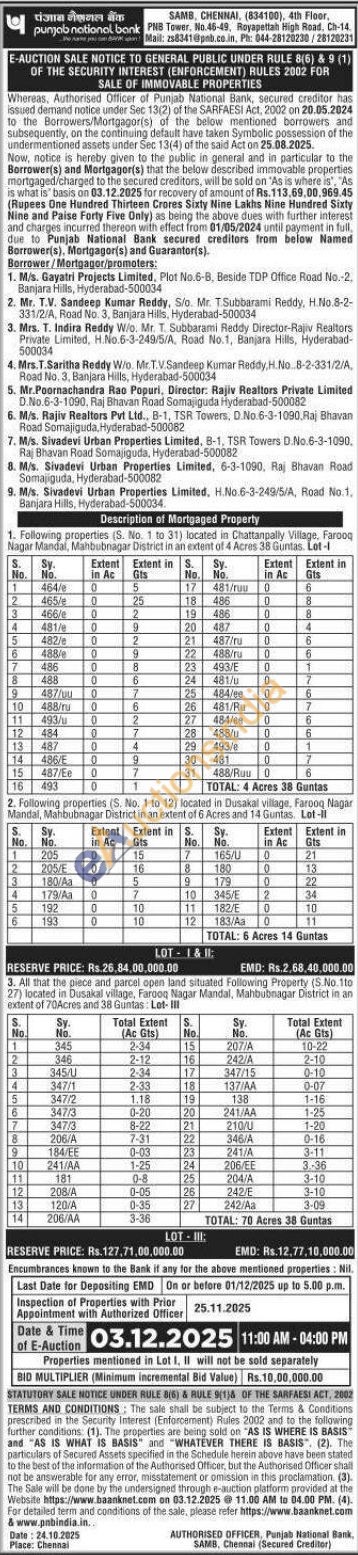 Following properties (S. No. 1 to 31) located in Chattanpally Village, Farooq Nagar Mandal, Mahbubnagar District in an extent of 4 Acres 38 Guntas. Lot-1