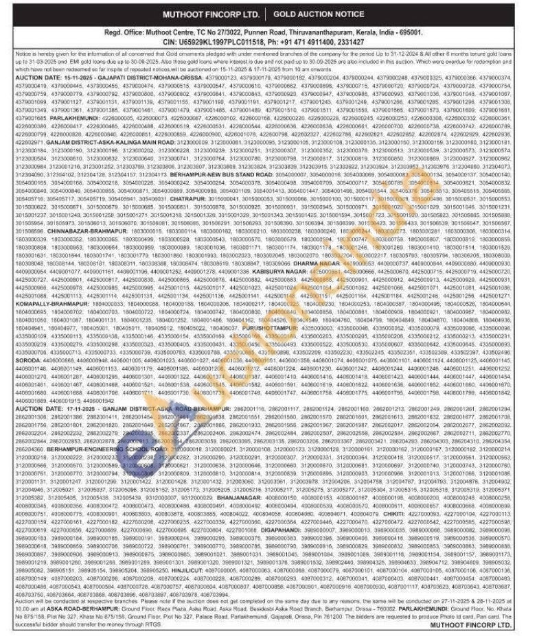 Muthoot Fincorp Ltd Gold Auctions Auction in Ganjam