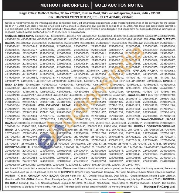 Muthoot Fincorp Ltd Gold Auctions Auction in Gwalior