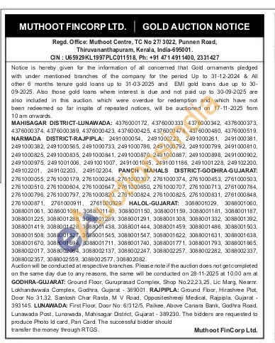 Muthoot Fincorp Ltd Gold Auctions Auction in Narmada