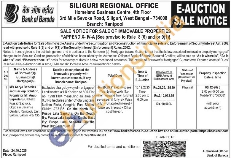 Exclusive charge by way of mortgage of Land located at LR Khaitan no 605, Plot no. 1298/1304 measuring an area of 0.0148 hectares under Chota Singtam, Naitam Elaka, Gangtok, East Sikkim, Sikkim -737135. On the North By: Puspa Lata Sapkota, On the South By: Puspa Lata Sapkota, On the East By: Puspa Lata Sapkota, On the West By: Seller Self