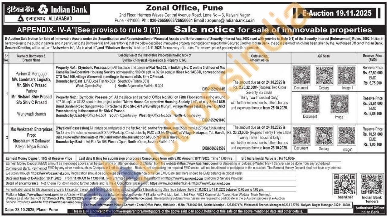 (Physical Possession) All that piece and parcel of the flat No. 105, on the first floor, area 255q mtrsi e 270 Sq.ft in building No. 18 and the scheme known as B.S.UP Parkalp, Constructed by PMC at S.No 89 (part) at Village Hadapsar, Tal. Haveli,Dist. Pune within the limits of PMC and within the Jurisdiction of Sub-registrar Haveli, Pune. Bounded by: East: Adj Flat No 106, West: Open, North: Open, South: Flat No 104