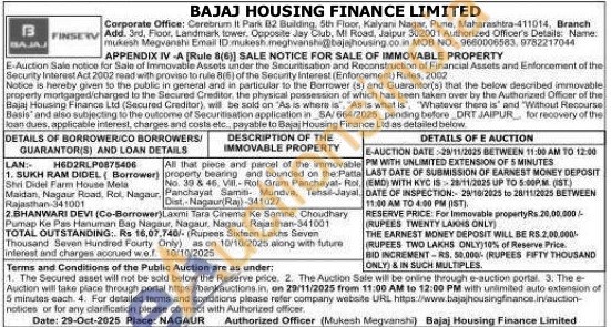 All that piece and parcel of the immovable property bearing and bounded on the Patta No. 39 & 46, Vill.-Rol, Gram Panchayat-Rol Panchayat Samiti Mundva, Tahsil-Jayal Dist. Nagaur(Raj)-341027