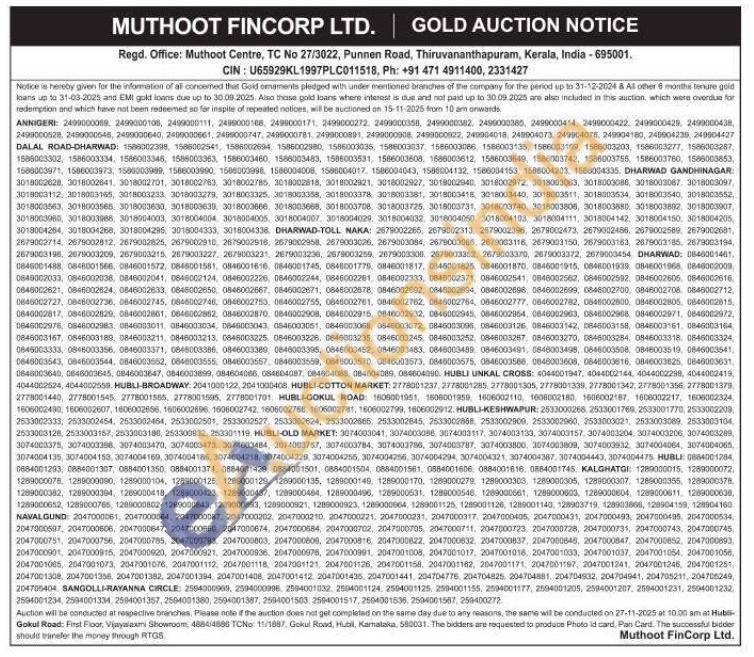 Muthoot Fincorp Ltd Gold Auctions Auction in Thiruvananthapuram