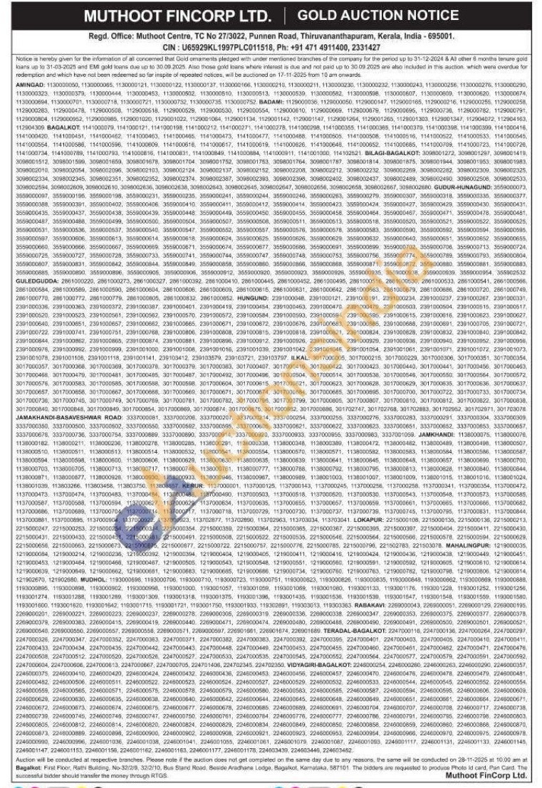 Muthoot Fincorp Ltd Gold Auctions Auction in Thiruvananthapuram