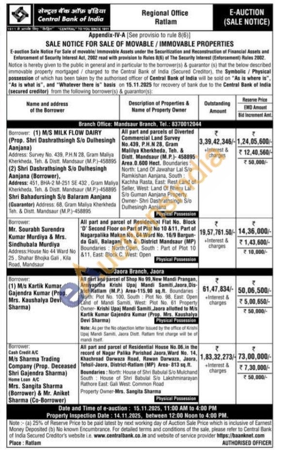 All part and parcel of Shop No 99, New Mandi Prangan, Arniyapitha Krishi Upaj Mandi Samiti, Jaora, Dis-trict-Ratlam (M.P.) Area-115.90 sq.ft. Boundaries North: Plat No. 100, South Plot No. 98, East: Open Land of Mandi Samiti, West: Plot No. 61 Property Owner-Krishi Upaj Mandi Samiti, Jaora allotted to Mis Kartik Kumar Gajendra Kumar (Prop. Mrs. Kaushalya Devi Sharma)