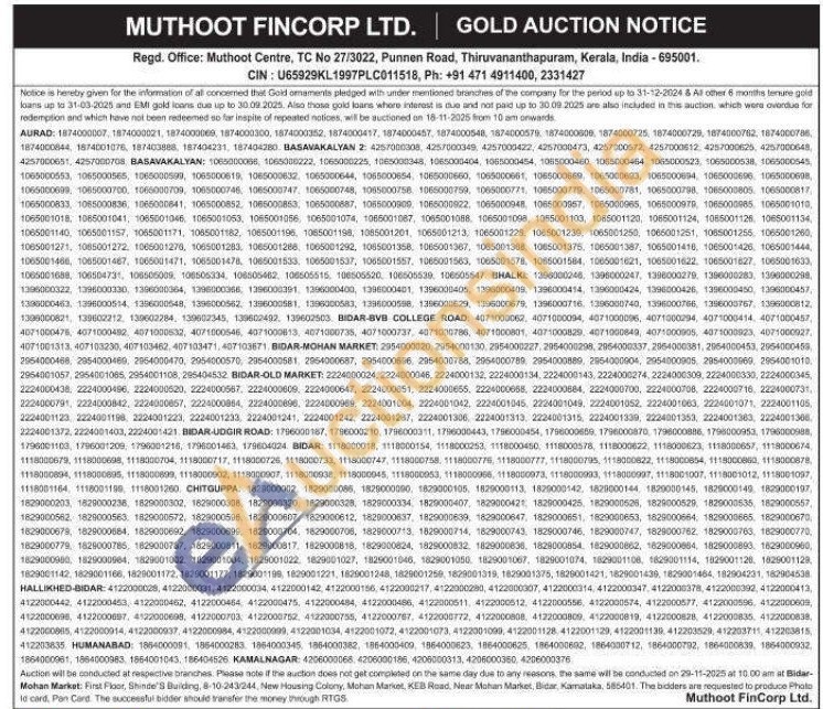 Muthoot Fincorp Ltd Gold Auctions Auction in Thiruvananthapuram