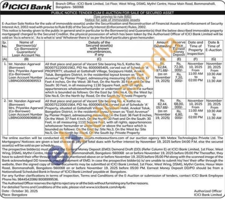 All that piece and parcel of Vacant Site bearing No. 4. Katha no. BD0075220001564, PID No. 6000065406.carved out of Schedule 'A' Property, situated at Gattahalli Village, Sarjapura Hobli, Anekal Taluk, Bangalore District, in the residential layout known as "East Avvenue" by Pionier Project, admeasuring measuring On the East: 36 Feet 8 inches, On the West: 37 Feet 4 inch, On the North: 30 Feet and On the South: 30 Feet, in all measuring 1110 Square Feet, with all rights, appurtenances whatsoever hereunder or underneath or above the surface which is bounded as follows: On the East by: Site No.3. On the West by: Site No.5. On the North by: Road, On the South by: Private Property