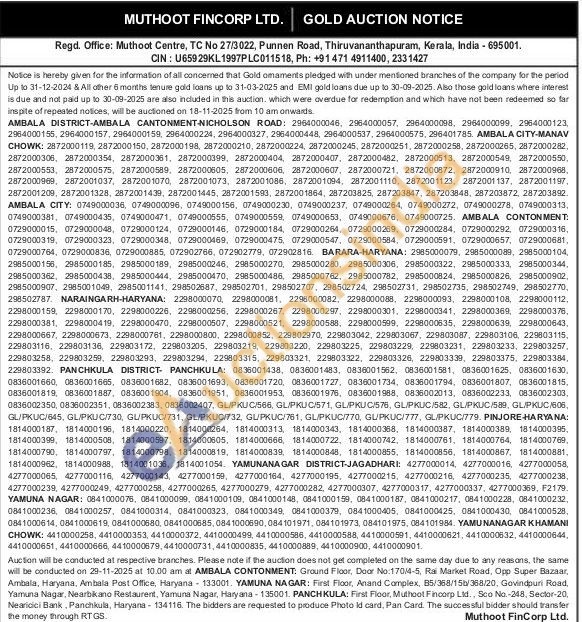 Muthoot Fincorp Ltd Gold Auctions Auction in Thiruvananthapuram