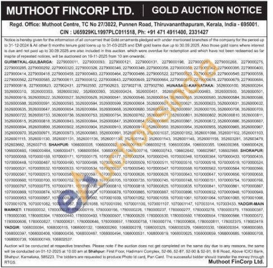 Muthoot Fincorp Ltd Gold Auctions Auction in Thiruvananthapuram