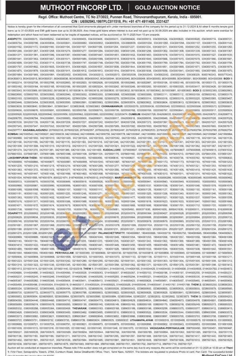 Muthoot Fincorp Ltd Gold Auctions Auction in Thiruvananthapuram