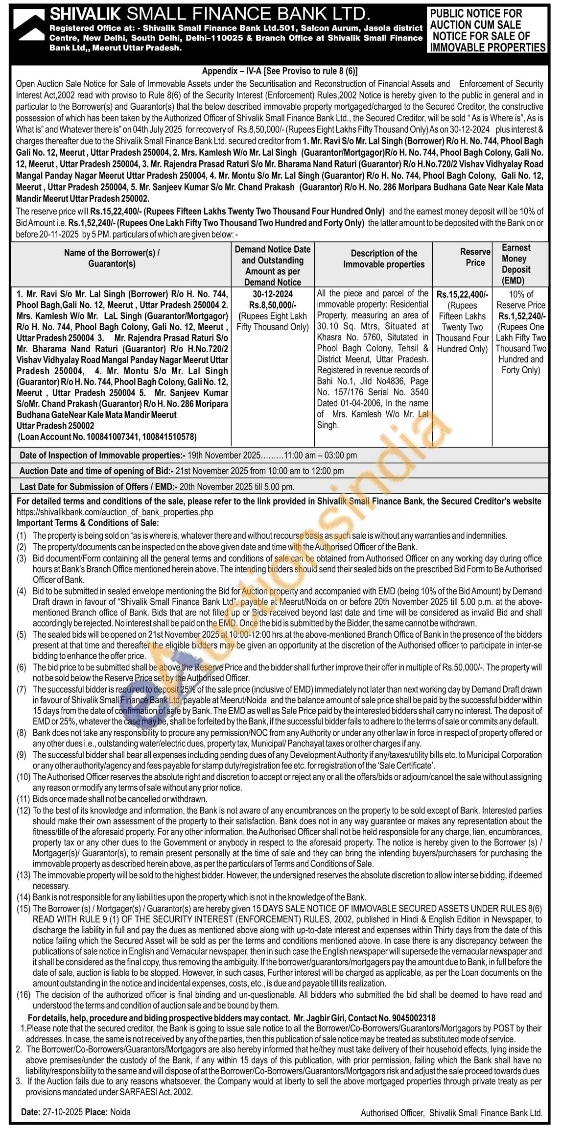 All the piece and parcel of the immovable property: Residential Property, measuring an area of 30.10 Sq. Mtrs, Situated at Khasra No. 5760, Situtated in Phool Bagh Colony, Tehsil & District Meerut, Uttar Pradesh. Registered in revenue records of Bahi No.1, Jild No4836, Page No. 157/176 Serial No. 3540 Dated 01-04-2006, In the name of Mrs. Kamlesh W/o Mr. Lal Singh