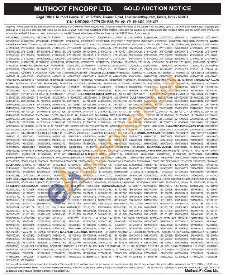Muthoot Fincorp Ltd Gold Auctions Auction in Thiruvananthapuram